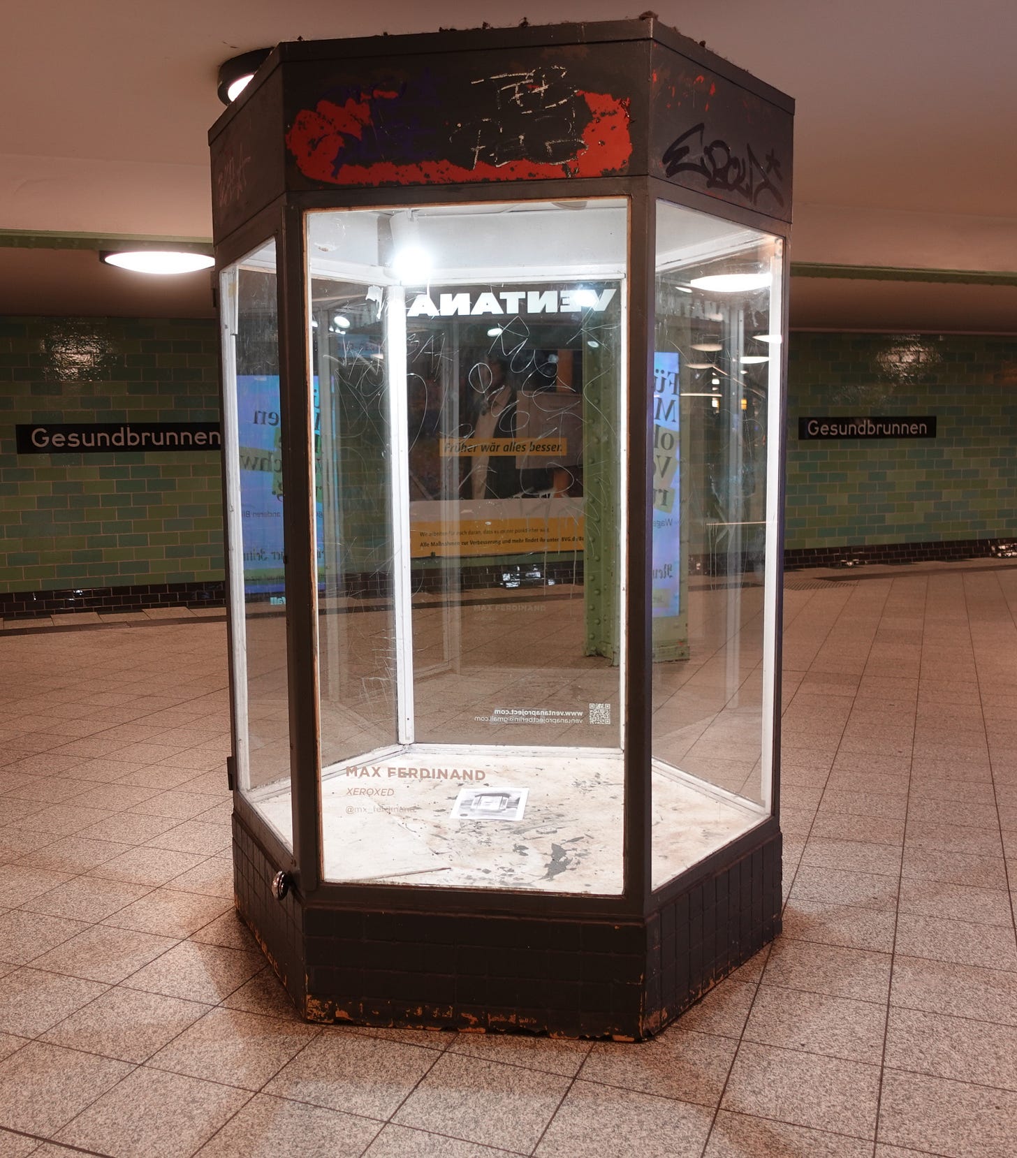 You call Stamford, Connecticut your home. So then we come from the same state. I wasn’t born there, but I grew up there. Maybe it’s the same with you? And then there were the years my mother worked there, in Stamford. Those were my early teenage years. That connection feels even more special. But here we are, in Berlin. I see you in a station that goes by the name of “Health Fountain,” but it’s dirty and gross. Has a bad reputation. And the rumors say that the fountain never existed or, if it did, that the supposed healthy properties of the water were indeed toxic properties. It’s another reversal that I love more than my life, even though it is my life.